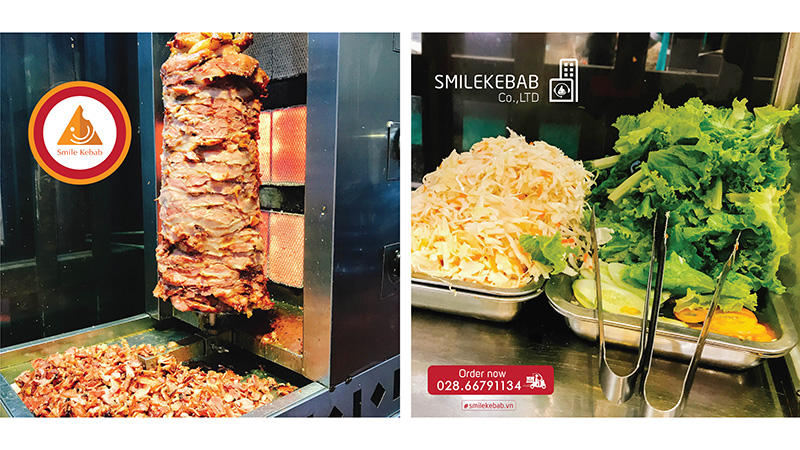 Món Doner Kebab phổ biến nhất được làm từ thịt cừu và thịt bò. Tuy nhiên, khi sang Việt Nam, để phù hợp với khẩu vị của người Việt, Smile Kebab đã dùng thịt heo nạc vai. Đặc điểm của nạc vai heo khi nướng lên rất mềm, miếng thịt vì thế khi nướng ăn rất ngon.