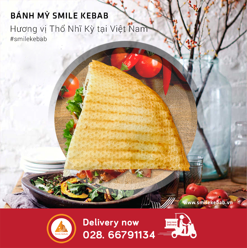 Thành phần làm nên vỏ bánh ngon chủ yếu từ một loại bột đặc biệt, khi nướng nóng ăn rất giòn nhưng không bị vỡ miếng bánh; ngoài tương ớt, tương cà, sốt trắng Smile Kebab là phần quyết định cho hương vị riêng không lẫn vào đâu được với những tiệm bánh khác !